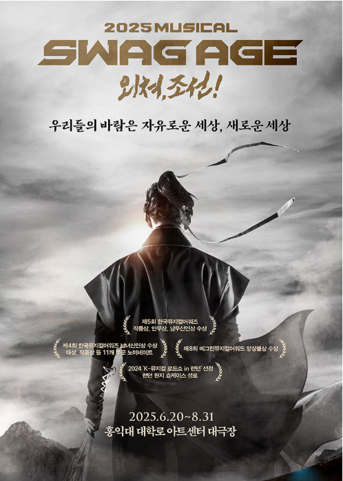 | 스웨그에이지 외쳐, 조선! | 홍익대 대학로 아트센터 대극장 | 2025년 6월 20일 ~ 8월 31일 | 회차별 상이 (예매 페이지 참고) | 8세 이상 |